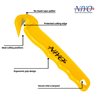 NIYO Disposable Safety Film Cutter a small, lightweight safety knife designed to cut stretch film, shrink wrap, pallet wrap, plastic bags, plastic straps, and twine, without exposing a loose or retractable blade. Typically, it has an enclosed, fixed steel blade in a plastic body and often includes a built‑in tape splitter for opening cartons without damaging contents.